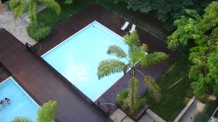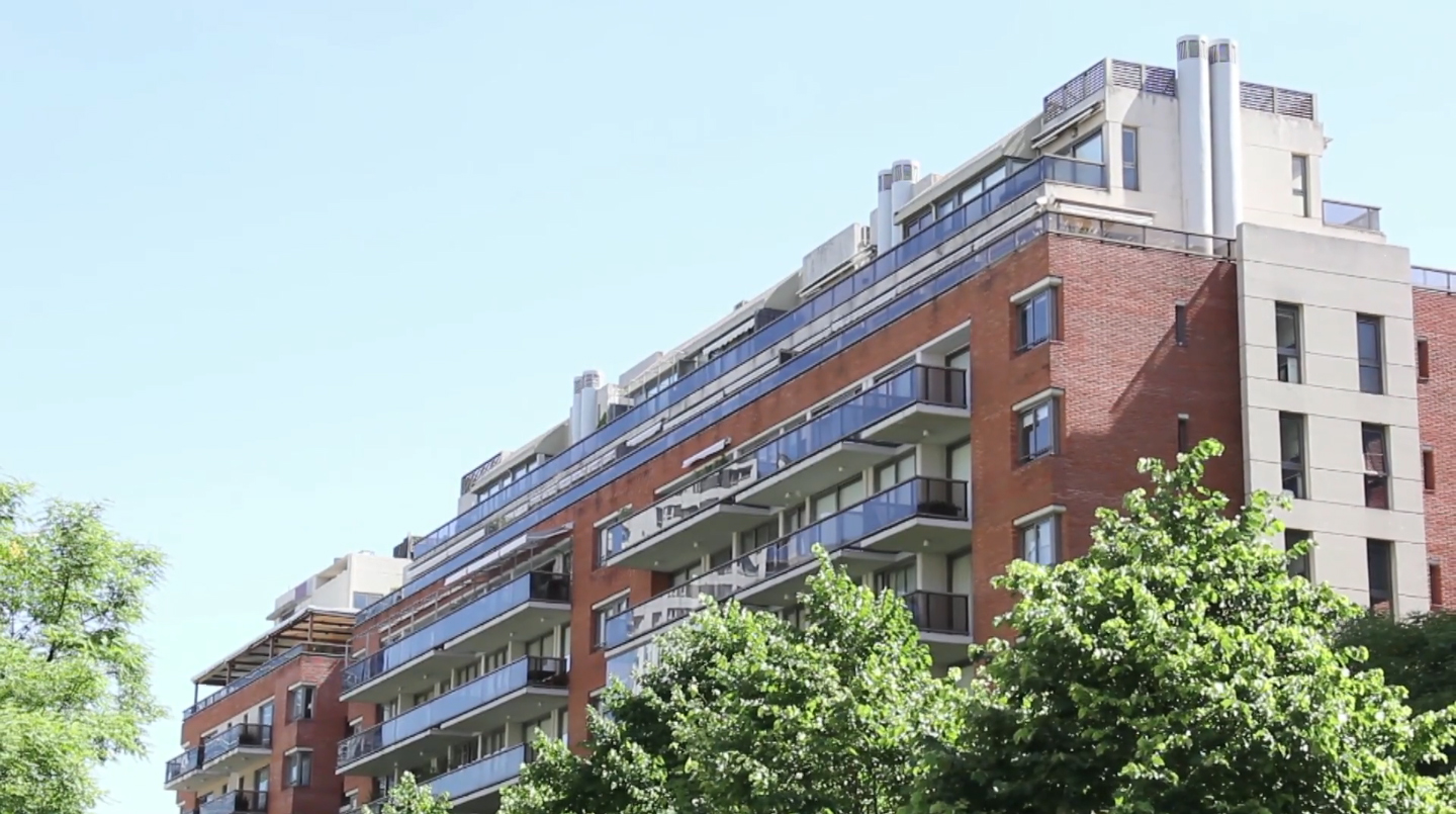 » Balcones aterrazados con barandas reforzadas de aluminio anodizado, cristales laminados de seguridad de 8,2 mm. color bronce medio. Pisos cerámicos en placas de 40 x 40 cm. Carpintería exterior de aluminio anodizado AT MAX con refuerzos interiores de acero galvanizado de gran grosor, cristales reforzados de 6 a 8 mm.